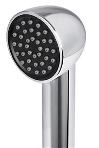 Vano doccia in acciaio inox AISI 316 con sportello autoreggente/frizionato. Doccetta Keji in plastica cromata e testa maggiorata. Boccola interna antivibrante. Miscelatore a pomello cilindrico.